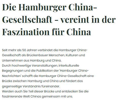 involvement, the Hamburger China-Gesellschaft continues to strengthen the bonds between
