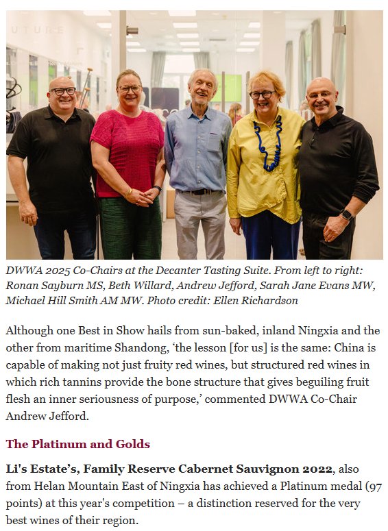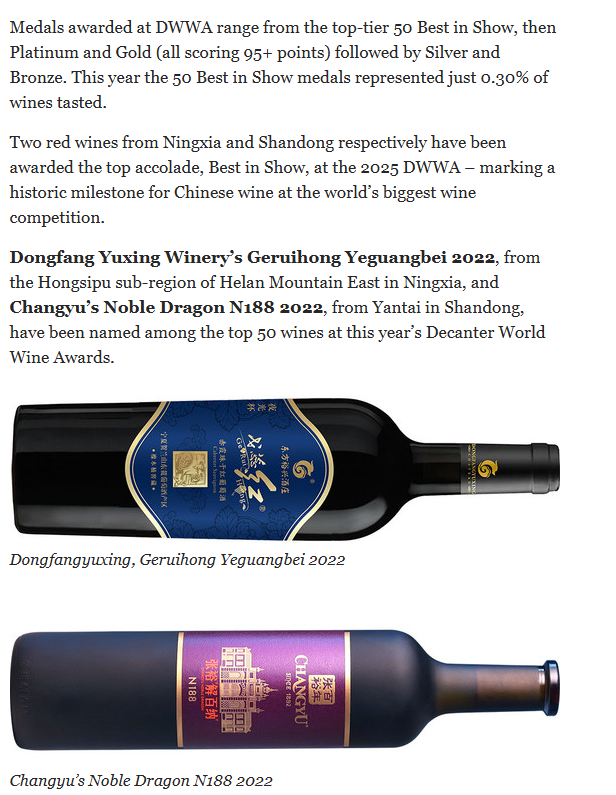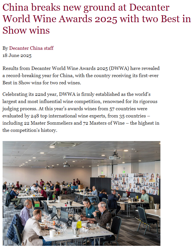 China achieved a historic breakthrough at the 2025 Decanter World Wine Awards by winning