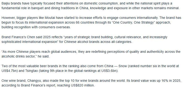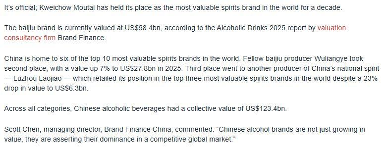 Chinese alcohol brands worth US$123.4 billion in 2025