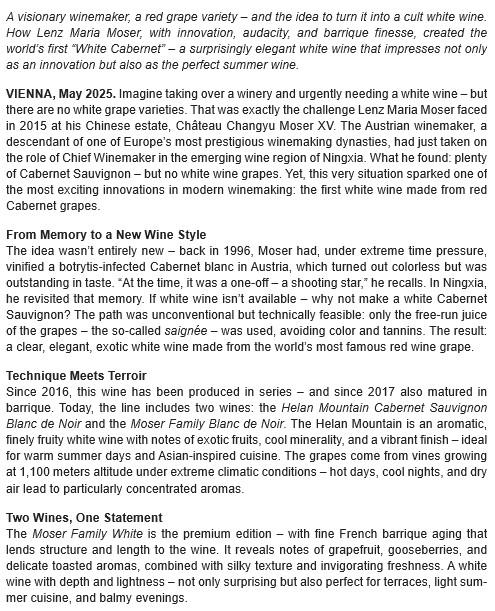 - Chateau Changyu Moser XV Moser Family Cabernet Sauvignon Blanc de Noir